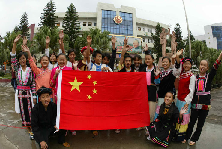 百色高中民族班的同学们在国旗下合影