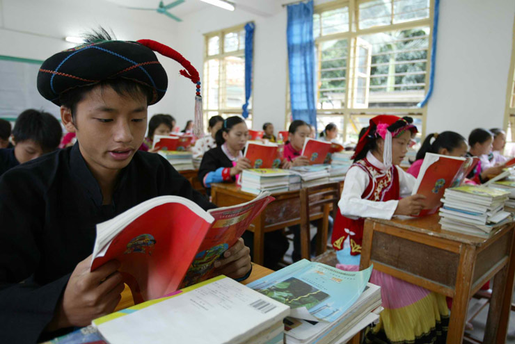 少数民族同学在百色高中民族班里学习