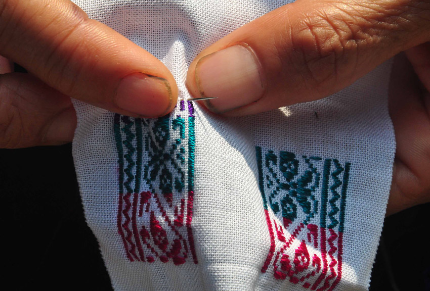 在贵州省黎平县铜关村,村民在一针一线地刺绣。
