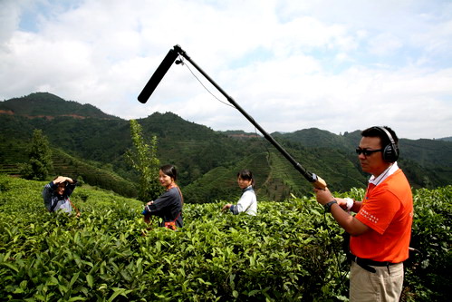 录音师 刘心杰在凌云县茶山采录歌手的声音