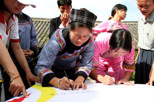 乐业县同乐镇央林村火卖屯民歌采风现场 歌手签名留念